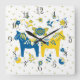 Relógio Quadrado Folha sueca Dala Horse l Blue e Yellow