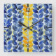 Relógio Quadrado Folhas Amarelas e Azuis