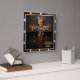 This incredibly moving and symbolic design captures the powerful theme of Forgiven Cross—redemption and sacrifice through Christ. The artwork, featured on a square wall clock, displays a dominant, rugged, textured cross appearing to be carved from ancient, gold-flecked earth against a dark background. The word "THE CROSS" is prominently displayed across the horizontal beam. The core message of Christian faith is clearly emphasized with the quote from Ephesians 1:7: "In Him we have redemption through His blood." The visual texture of the cross makes it feel timeless and profound. The highest quality print and artwork used on the surface is so exceptional it creates a stunningly realistic tactile illusion; you could easily mistake the textures for genuine embossed metal or heavy, worn leather. This piece is a spectacular dedication to faith and the love of God. this impressive, high-quality piece is a perfect gift for any devoted person, honoring their spiritual journey.