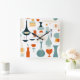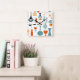 Uma bela forma vaso para ajustado de um tema moderno de meio século. Vermelho suave e azul constituem a maioria das cores neste design impressionante - com salpicos de lavandas amarelas e mudas. Esta versão tem um fundo branco. Um design de relógio muito bonito para adicionar um sotaque moderno de meio século à decoração da sua casa.