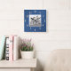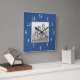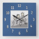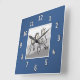 Um simples relógio de parede onde o tempo circula ao seu redor ou aos seus amados! Adicione sua foto pessoal e este relógio será transferido para um item valioso para você ou para alguém que você gostaria de surpreender! O quadro quadrado colorido é azul, e os dígitos são brancos com uma certa sombra preta. Existem 5 variações de cor deste design - preto, prateado, azul e rosa.