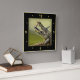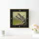 Fotografia de ação de um jogador a apanhar o almoço. Essa fotografia da natureza mostra o perfil de um jacaré com boca aberta prestes a pegar o frango jogado a ele (ou a ela) que envia Duckweed voando. A imagem é emoldurada com uma face preta e dourada do relógio e será uma adição especial à sua casa, escritório ou caverna de homem.