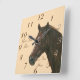 Relógio Quadrado fotografia equina do cavalo castanho-castanho