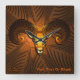 Várias imagens fractais combinadas para formar a cabeça de um carneiro colorido sobre um fundo que parece madeira esculpida. Adicione seu próprio texto.