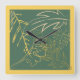 Relógio Quadrado Fundo Verde Folha Dourada Chic