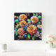 Relógio Quadrado Galeria de Flores Laranja Asiáticas de Desenho do