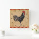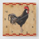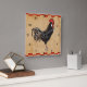 Um galo contra um fundo do tan do vintage, cercado por uma beira checkered vermelha