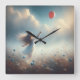 Relógio Quadrado Garota Pequena Com Balão Vermelho
