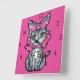 Relógio Quadrado Gatinho Kawaii, bonito, com fundo cor-de-rosa bril