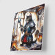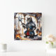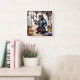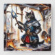 Relógio Quadrado Gato blindado segurando lança em Blacksmith Worksh