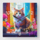 Relógio Quadrado Gato Bonito Sentado na Janela da Cidade Arte Ai