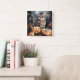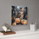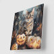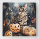 Relógio Quadrado Gato de Halloween Bengal com Pumpkins assustado