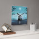 Relógio Quadrado Gato e por do sol do inverno dos cães