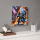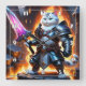 Relógio Quadrado Gato Guerreiro em Armadura com Espada Luminosa