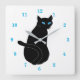 Relógio Quadrado Gato Preto Com Olhos Azuis