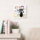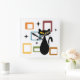 Ilustração colorida do estilo do Meio século abstrato com gato preto, estrelas pretas e ornamentação colorida em fundo branco. Você pode adicionar seu nome/monograma para personalizar o item.