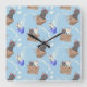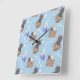 Relógio Quadrado Gatos na caixa e leite cai em azul