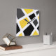 O pulso de disparo de parede imprimiu com pintura acrílica geométrica original em amarelo, cinzento, preto e branco.