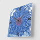 Impressão de uma margarida gerbera, baseada em uma fotografia, transformada digitalmente e pintada à mão - tons de cobalto e azul-celeste com rosa e branco suaves