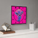 Uma pose engraçada de um girafa bonito - colando para fora sua língua, em cores de néon funky do rosa e do azul. tem-lhe uma sensação retro do pop art dos anos sessenta.
