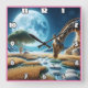 Relógio Quadrado Girafa mágica sob a lua brilhante