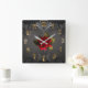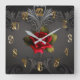 Relógio Quadrado Glamour Gótico Rosa Vermelha Preta Ornamental Glam