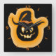 Relógio Quadrado Glowing Pumpkin Witch On Black Square Wall Clock