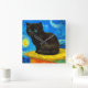 Relógio com um gato Van Gogh no estilo da Noite Estrelada! Um gatinho negro e fofo permeia uma mesa contra um céu azul e uma lua amarela. Um presente perfeito para amantes de gatos e colecionadores de arte holandeses!