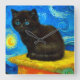 Relógio Quadrado Gogh Style Starry Night Cat