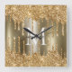 Relógio Quadrado Gold Glitter Drips Monogram Personalized
