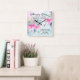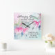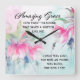 O relógio de parede retrata uma bela aquarela floral com flores cor-de-rosa num fundo azul. Ele apresenta o amado Hino Cristão, "Graça Incrível, quão doce o som que salvou um miserável como eu! Uma vez eu estava perdido, mas agora eu me encontrei, era cego, mas agora eu vejo."
