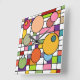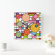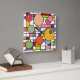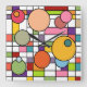 Este relógio de parede tem uma design moderna do século médio de uma grade com alguns retângulos coloridos e círculos no topo em cores retrorreflectoras.