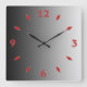 Relógio Quadrado Gradiente de cinza, discagem vermelha.
