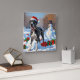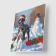 Relógio Quadrado Grande Dane correndo em neve com chapéu de Natal