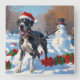 Uma majestosa Faixa corre através da cena de inverno nevado, vestindo um chapéu de Natal vermelho festivo. Este design impressionante captura a poderosa estatura, a natureza gentil e a personalidade leal da raça enquanto celebra o calor e a magia da época de férias. Um cheio de alegria festiva.