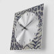 10,75" x 10,75" de relógio na parede acrílica com uma imagem de impressão preta e cinza e tigre. Rosto do relógio prateado com marcadores de pedra. Veja toda a coleção Este e Aquele Relógio na seção HOME.