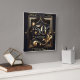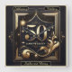 Celebre 50 anos dourados com um design luxuoso que exala elegância. Um fundo preto destaca uma moldura dourada radiante com padrões em estilo barroco e floreios ornamentados. O texto em negrito "Aniversário de 50 anos" brilha intensamente, rodeado por acentos cintilantes e explosões de estrelas comemorativas. Este design captura a essência do amor e do compromisso duradouros.