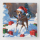 Relógio Quadrado Greyhound correndo em neve com chapéu de Natal