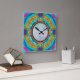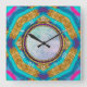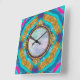 Relógio Quadrado Groovy Mandala Aqua Blue Roxo Wall Clock