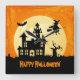 Relógio Quadrado Halloween Moonlight Haunlight House in Graveyard