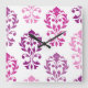 Relógio Quadrado Heart Damask Art I Pinks Plums White
