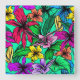 RELÓGIO QUADRADO HIBISCUS COLORIDO