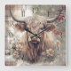 Relógio Quadrado Highland Cow Tartan Clan Watercolor
