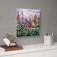 Relógio Quadrado Hollyhocks Vintage Floral Tiffany Vidro