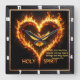 This incredibly moving and symbolic design captures the theme of Fire Within—the powerful, soaring nature of the Holy Spirit's presence. The artwork, featured on a square wall clock, displays a dramatic heart shape entirely constructed of intense orange and yellow flames against a deep black background. At the center of the flame is a strong yellow and orange dove/eagle in flight, a dynamic representation of the Holy Spirit's power. The core message from Romans 5:5 is clearly displayed: "God's love has been poured into our hearts through the Holy Spirit." The highest quality print and artwork used on the surface is so exceptional it creates a stunningly realistic tactile illusion; you could easily mistake the textures for genuine embossed metal or heavy, worn leather. This piece is a spectacular dedication to faith and the love of God. this impressive, high-quality piece is a perfect gift for any devoted person, honoring their spiritual journey.