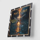 This incredibly moving and symbolic design powerfully conveys the theme of Flame and Water—the spiritual cleansing and empowering baptism of the Holy Spirit. The artwork, featured on a square wall clock, displays a vibrant cross made entirely of fire ascending dynamically from dark, deep, rippling water. The bright cross is strongly reflected in the liquid below, emphasizing the divine presence and reality of the message from Matthew 3:11: "He will baptize you with the Holy Spirit and fire." The powerful visual contrast between the radiant fire and the cool, blue water symbolizes purification and the transformative power of faith, making it clear this is a design about the Holy Spirit. The highest quality print and artwork used on the surface is so exceptional it creates a stunningly realistic tactile illusion; you could easily mistake the textures for genuine embossed metal or heavy, worn leather. This piece is a spectacular dedication to faith and the power of the Holy Spirit. this impressive, high-quality piece is a perfect gift for any devoted person, honoring their spiritual journey.