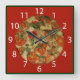 Relógio Quadrado Hora da Pizza - Borda Vermelha e Números Brancos