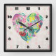 Relógio Quadrado Ilustração de Coração Floral em Rosa e Verde
