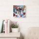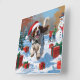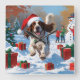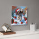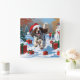 Relógio Quadrado Inglês a correr em neve com chapéu de Natal