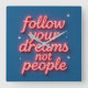 Stunning wall clock featuring an inspirational quote- follow your dreams not people. It's a reminder to stay focused on your self and your dreams.